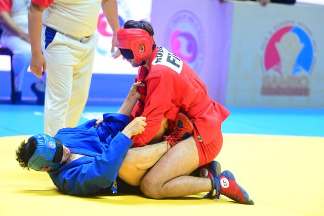 | 시각 장애인부 선수들은 시력에 따라 특수 안대를 착용하고 경기에 나섰다. 사진=국제삼보연맹 |