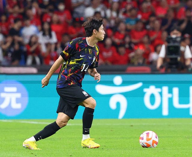 이날 한국은 포지션별로 주축 선수가 빠졌다. 주장 손흥민(토트넘 홋스퍼)이 스포츠 탈장 수술 후 휴식으로 벤치를 지켰다. 기초군사훈련을 받는 김민재(나폴리)와 부상 재활 중인 정우영(알 사드), 김영권(울산현대)은 제외됐다.