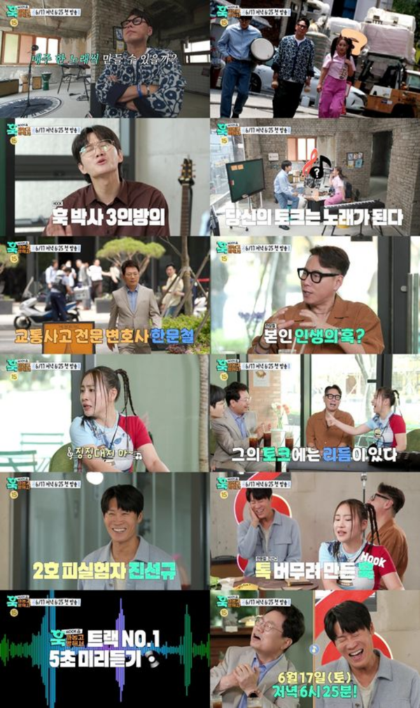 이들이 하나 되어 제작한 최종 음원은 방송 다음 날 12시에 공개되며, 오는 17일(토) 저녁 6시 25분에 첫 방송되는 ‘훅 까놓고 말해서’ 1회에서는 음원으로 만들어진 무대가 최초 공개된다.