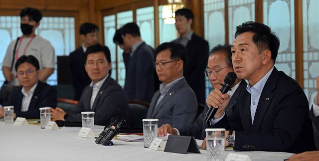 김기현 국민의힘 대표가 18일 오후 서울 종로구 삼청동 총리 공관에서 열린 고위당정협의회에서 발언을 하고 있다.(사진=연합뉴스)