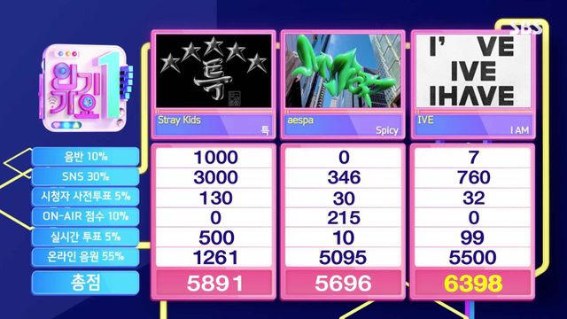 18일 방송된 SBS '인기가요'에서 아이브가 '아이엠'으로 6월 셋째 주 1위를 차지했다. 스트레이 키즈의 '특', 에스파의 '스파이시'를 꺾었다.