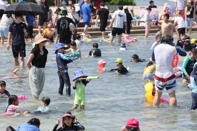 서울 등 중부내륙에 폭염주의보가 발령된 18일 오후 서울 여의도물빛광장에서 어린이 및 시민들이 물놀이를 즐기고 있다. [사진=연합뉴스]