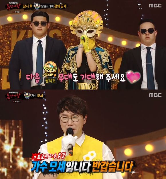 '팔색조'에게 패한 '달갈프라이'는 '사랑인걸'의 모세였다. 그는 "7년 만에 '복면가왕'에 다시 왔다"라고 말했다. 그는 트로트 가수 춘길로도 활동 중이다.