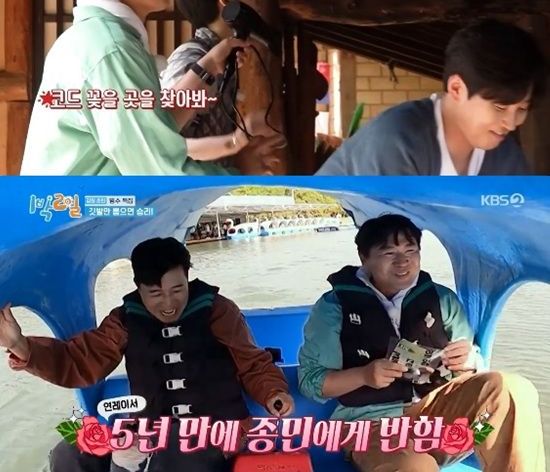 18일 방송된 KBS 2TV '1박 2일 시즌4'에서는 연정훈, 김종민, 문세윤, 딘딘, 나인우, 유선호가 게스트 박태환, 차준환과 춘천 여행을 떠나는 모습이 전파를 탔다.
