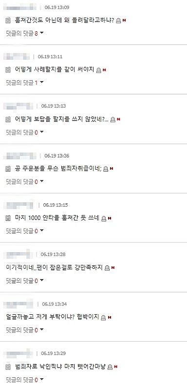 최주환이 쓴 호소문 내용을 본 네티즌의 반응이 담긴 댓글 / 네이트