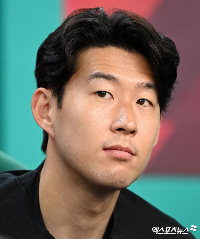 (엑스포츠뉴스 대전, 김한준 기자) 19일 오후 대전월드컵경기장에서 열린 '하나은행 초청 축구국가대표팀 친선경기' 대한민국과 엘살바도르의 경기 전 공식 기자회견, 손흥민이 손준호 질문에 관련해 답하고 있다.