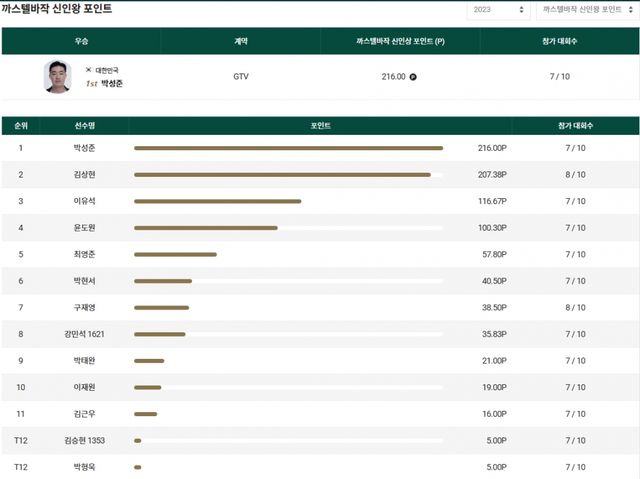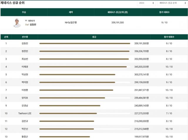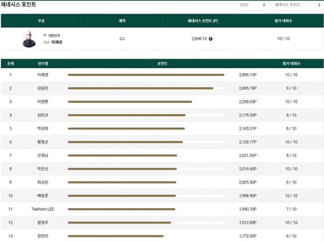 ■제네시스 포인트(하나은행 인비테이셔널 종료 기준)