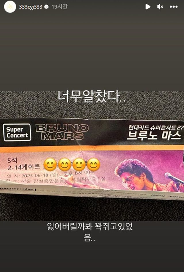 그룹 갓세븐 멤버 영재가 '내돈내산' 브루노 마스 콘서트 티켓을 인증했다.