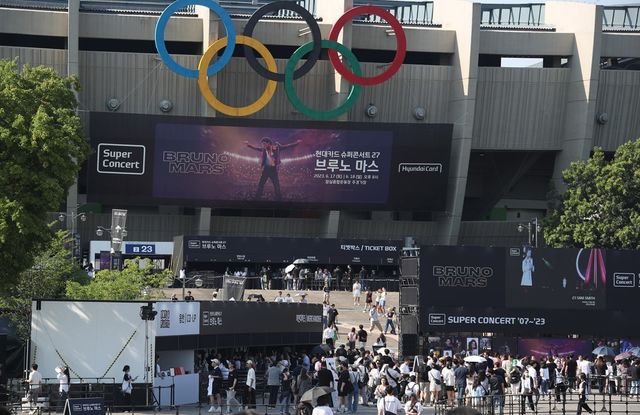18일 브루노 마스의 내한공연이 열리는 서울 잠실 종합운동장 올림픽주경기장 앞이 팬들로 인산인해를 이루고 있다 / 뉴스1