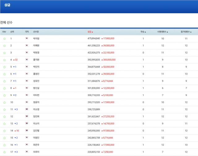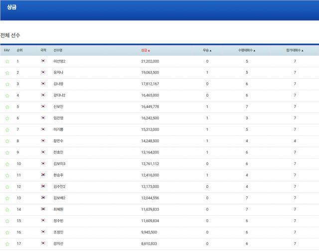 ■상금순위(DB그룹 제37회 한국여자오픈골프선수권대회 종료 기준)
