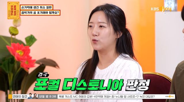 MC들은 특별한 계기가 있었는지 물었지만, 여자 의뢰인은 "어느 날부터 갑자기 손가락이 불편했다"며 특별한 계기는 없었다고 답했다. 어느 순간 쉽게 움직이지 않는 손가락을 참아가며 졸업 연주회를 꾸역꾸역 해내고, 2주 뒤 다시 악기를 잡자 악기에서 손이 떨어지지 않았다고 전했다.