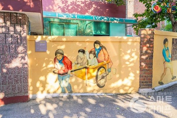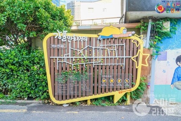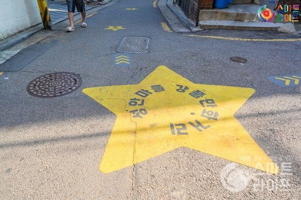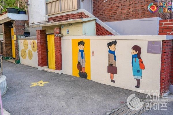 바닥에 길이 잘 표시되어 있어서 어느 쪽으로 가든 강풀의 만화를 볼 수 있다. '승룡이네집'에 가면 책방과 카페로 이용이 가능하다.