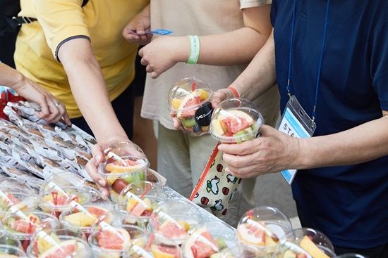 YG엔터테인먼트는 발달장애인들의 생활체육 참여를 지지하고 응원하는 마음을 담아 간식차를 준비했다. 장시간 진행되는 행사 중 체력 보충에 도움을 줄 건강한 메뉴들로 구성, 현장에 모인 250여명의 아동과 성인 모두 다양하게 즐길 수 있도록 지원했다.