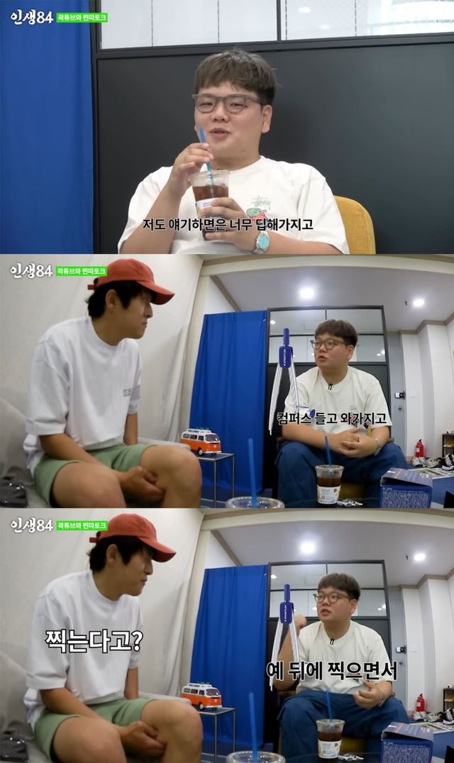 곽튜브는 "저도 얘기하면 너무 딥해진다. 컴퍼스를 들고 와서 뒤에서 찍었다. 내가 아파하면 좋아하고 그랬다"고 털어놨다.