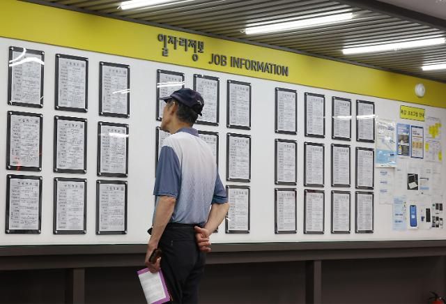 19日,在首尔麻浦区首尔西部雇佣福祉中心,一位市民正在查看招聘信息。【图片来源 韩联社】