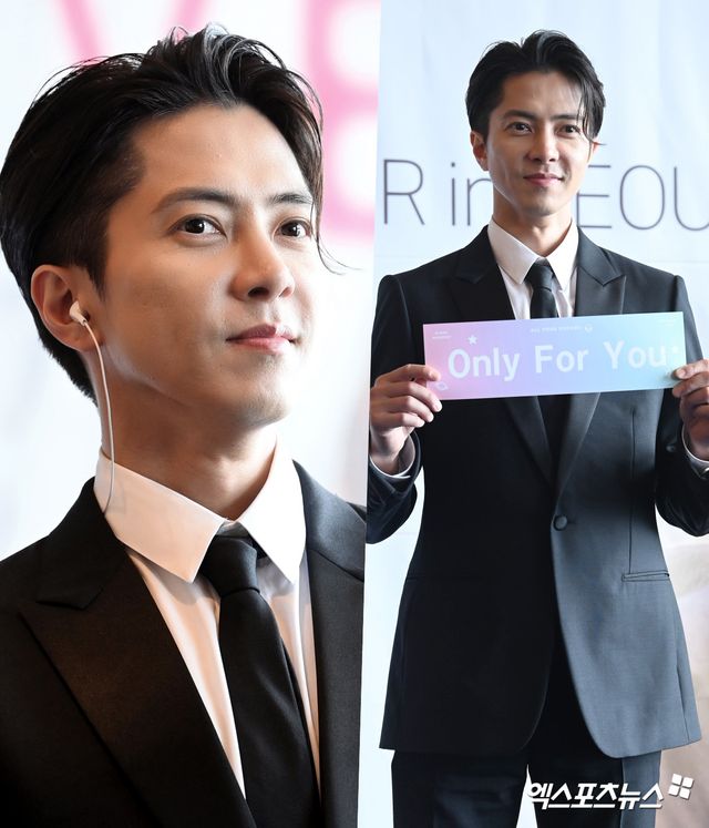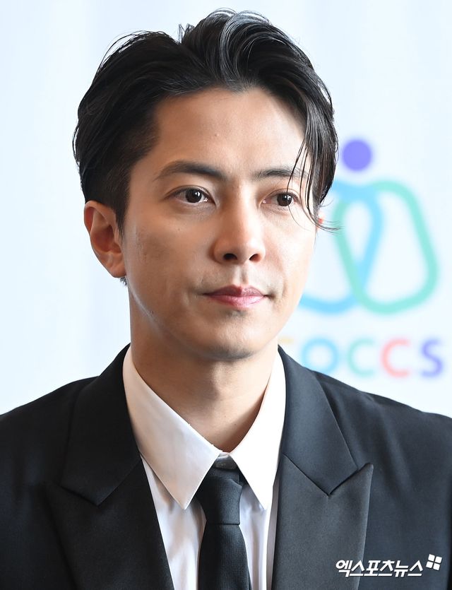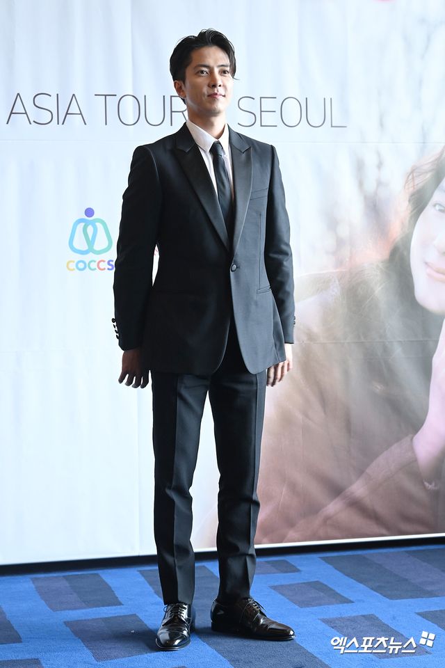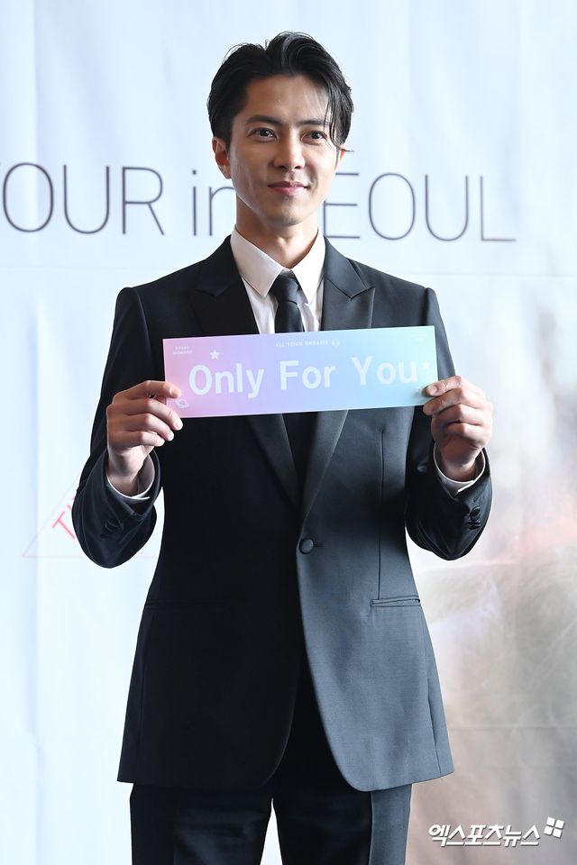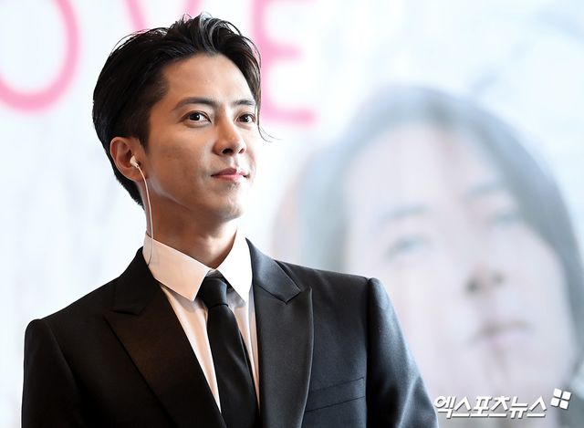 이날 기자간담회에 참석한 배우 야마시타 토모히사가 포토타임을 갖고 있다.