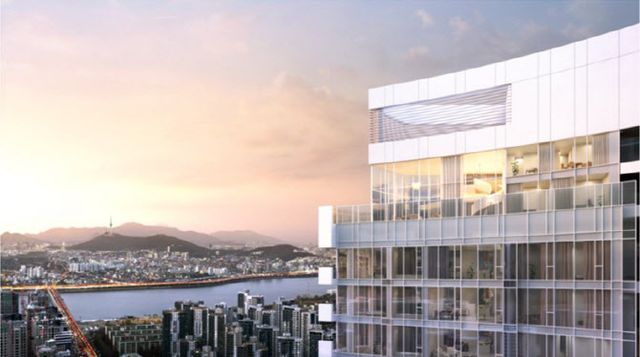 주거공간은 1개 층당 1세대로 설계해 프라이빗한 생활을 지원하며, 단층, 복층, 펜트하우스 등 다양한 타입 구성으로 개인 취향에 맞게 선택할 수 있다. 실사용면적은 아파트가 119~138평, 오피스텔이 66~131평으로, 일부 세대는 한강 조망도 가능하다. 주차공간은 세대당 5대다.