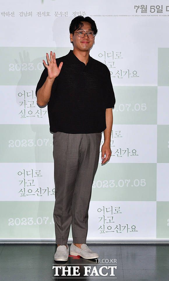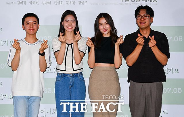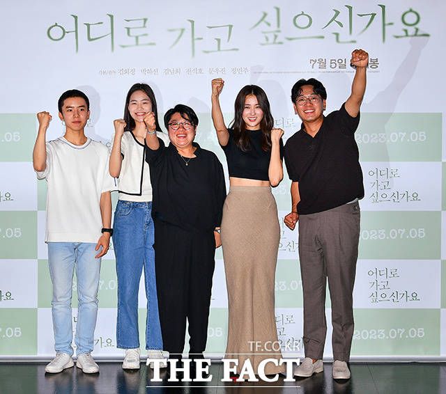 [더팩트 | 장윤석 인턴기자] 배우 문우진과 정민주, 김희정 감독, 박하선, 김남희가 22일 오후 서울 광진구 롯데시네마 건대입구점에서 열린 영화 '어디로 가고 싶으신가요' 배급 시사회에 참석해 포즈를 취하고 있다.