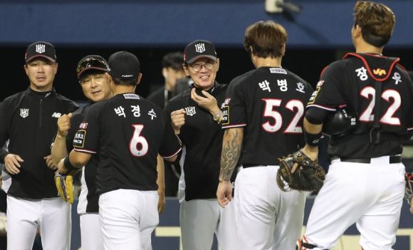 KT는 지키는 야구에 성공했다. 벤자민이 5이닝 1실점으로 잘 막았고 이어 주권-손동현-박영현이 마운드 위로 올라가 실점을 최소화했다. 마무리 김재윤은 8회초 2사 1루 상황에서 구원 등판해 1.1이닝을 무실점으로 막고 KT 승리를 지켰다.