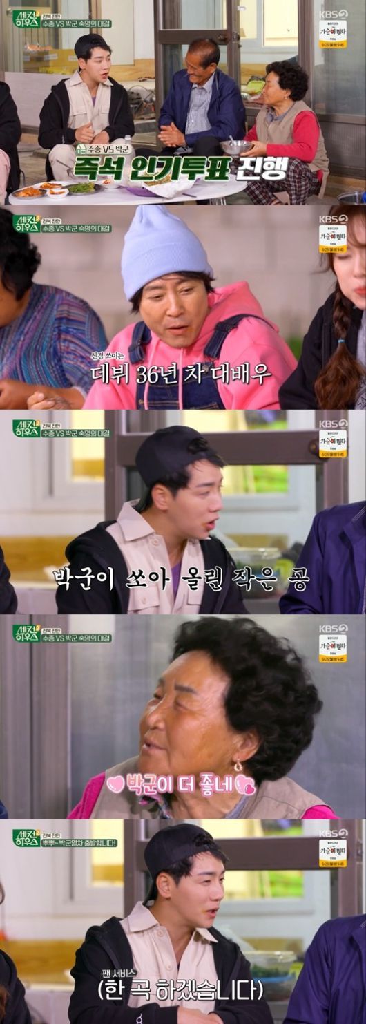 박군은 이장댁 할머니에게 "최수종과 박군 중 누가 더 좋냐" 는 질문을 던졌다. 그러자 할머니는 "박군이 더 좋네" 라고 수줍게 답했고, 박군은 뜻밖의 답에 당황해 쩔쩔매는 모습으로 웃음을 줬다.