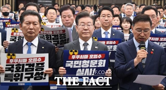 [더팩트ㅣ국회=송다영 기자] 더불어민주당·정의당·진보당 등 야권이 '일본 후쿠시마 원전 오염수 방류' 문제를 두고 여론전에 총력을 쏟고 있다. 민주당은 전국 규모 규탄대회를 열고 의원 일부는 단식 투쟁도 불사하겠다고 나섰다. 정의당은 후쿠시마를 항의 방문했고, 진보당은 국제해양법재판소 제소를 주장했다.