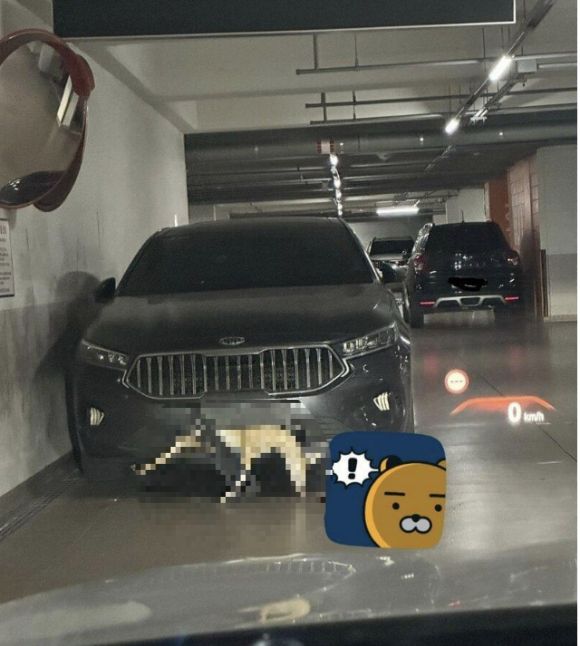 공개된 사진에는 검은색 승용차가 앞 범퍼에 고라니 사체를 끼운 채 아파트 단지 외부 도로변에 주차돼 있었다. 또 다른 사진에는 같은 차량이 고라니를 내걸은 채 다른 장소인 아파트 지하 주차장에 주차돼 있었다.
