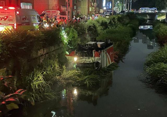 A씨는 이날 오후 8시 25분께 인천시 부평구 갈산동 공영주차장에서 술에 취한 채 우체국 택배 트럭을 몰다가 울타리를 뚫고 약 5m 아래 하천으로 추락하는 사고를 낸 혐의를 받고 있다.