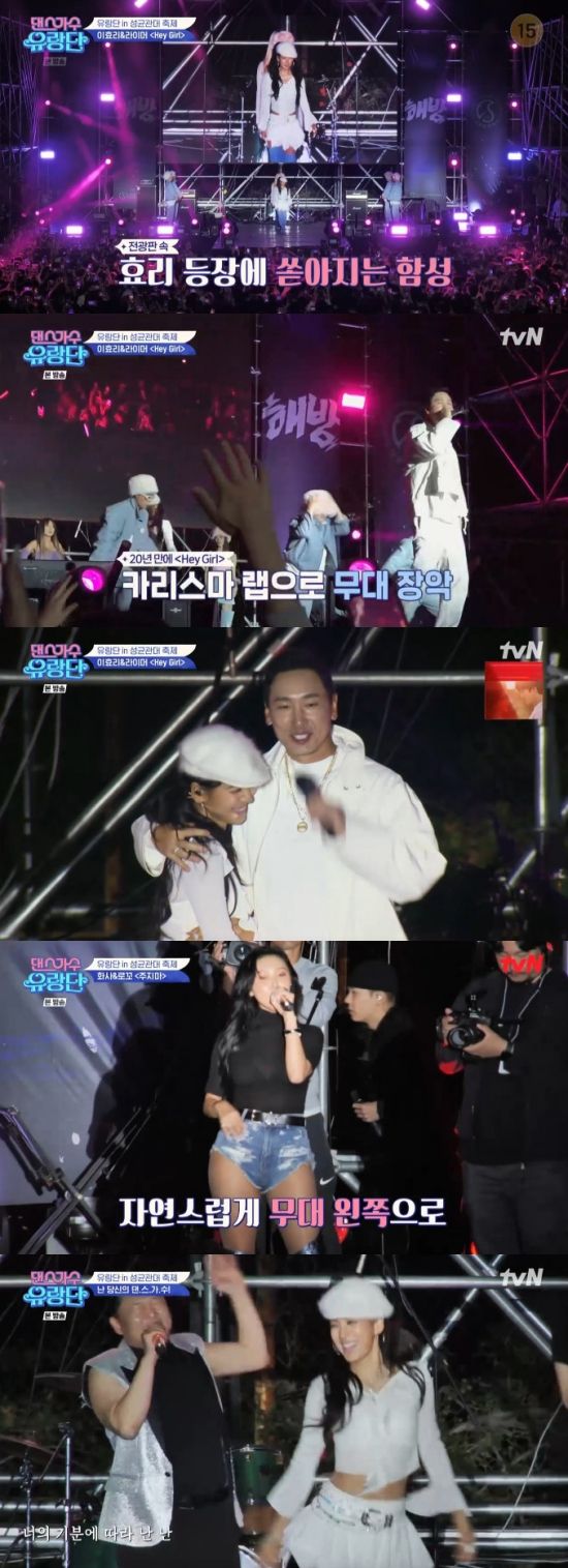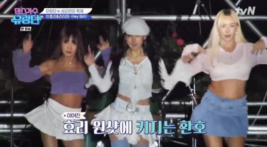 22일 방송된 tvN '댄스가수 유랑단'에서는 김완선, 이효리, 화사가 성균관대학교 축제 무대에 오른 장면이 전파를 탔다.
