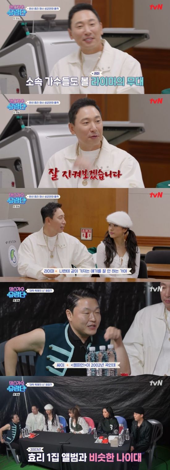싸이는 "'챔피언'이 2002년 곡인데 지금 신입생이 2004년생이다. 근데 안다"라며 이효리와 김완선을 안심시켰다. 이효리는 "나 '헤이 걸'이 2003년이다"라며 덧붙였고, 싸이는 "지금 대학교 2학년이 2003년생이다"라며 설명했다.