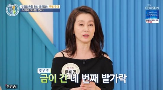 문희경은 "테이블에 왼쪽 네번째 발가락을 부딪혔는데 너무 아프더라. 괜찮을 줄 알았는데 계속 붓고 멍들어서 병원에 갔더니 뼈에 금이 갔다고 했다"고 놀랐던 때를 떠올렸다.