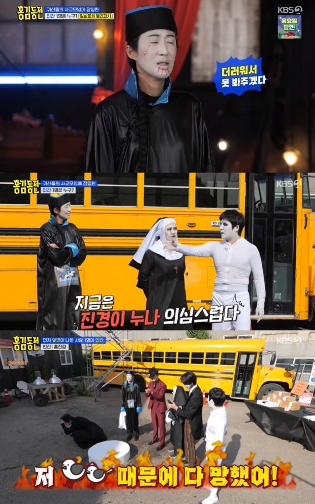 22일 방송된 KBS 2TV '홍김동전'에서는 귀신 특집이 펼쳐진 가운데 귀신들의 사교모임에 참석해 단 한 명의 인간 찾기에 나선 멤버들의 모습이 전파를 탔다.