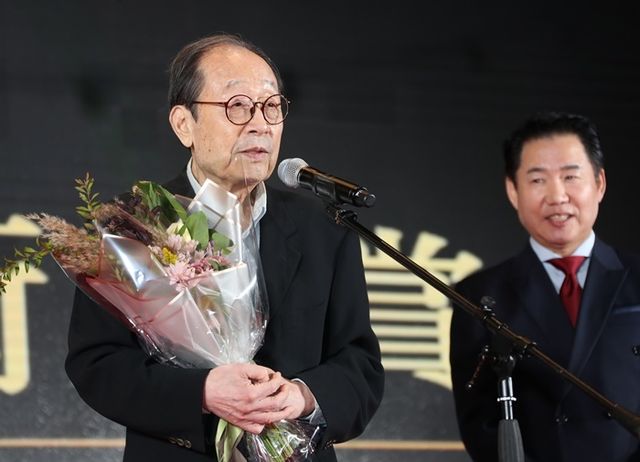 원로배우 신구가 지난해 10월 제12회 아름다운예술인상에서 연극예술인 부문 상을 수상한 뒤 소감을 말하고 있다 / 뉴스1
