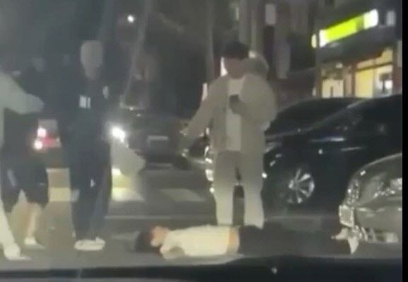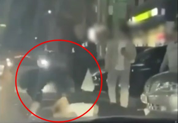 폭행 현장 인근 차량 블랙박스에 담긴 영상에는 B씨가 도로 위에 널브러진 A씨의 얼굴을 주먹으로 여러 차례 내려치는 모습이 포착됐다.