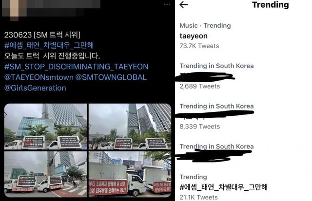 소녀시대 태연의 팬들이 진행한 트럭 시위로, SM이 소속 아티스트 태연에 대한 부당한 대우가 지속되어 왔기 때문에 시작되었다고 설명했다.