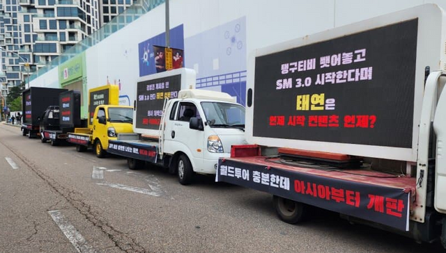 앞서 지난 22일 서울 강남구 성수동 SM엔터테인먼트 사옥 앞에 트럭 시위가 발생했다.