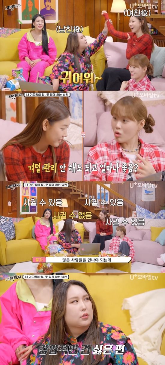 엄지윤은 "전 만날 수 있다. 오히려 (제모를 안 해도 되니) 편하다"고 말했다. 한혜진과 랄랄 역시 만날 수 있다는 의견을 밝혔다.
