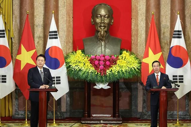 尹锡悦表示,越南是韩国落实印太战略和韩国与东盟连带构想的核心合作伙伴,当前地区面临的最紧迫安全威胁是朝鲜核导开发,韩方将与越方及东盟深化双边合作。