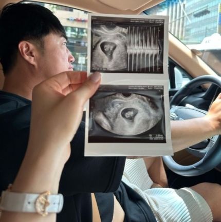 사진에는 주유진 씨가 둘째로 보이는 아이의 초음파 사진을 들고 있는 장면이 담겨있다. 아빠 장동민은 살짝 미소를 띈 표정으로 운전을 하고 있다.