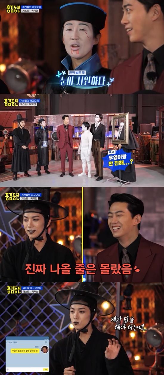 이를 지켜보던 김숙은 옥택연에게 "솔직히 말해서 우영이랑 안 친하냐. 인사할 때 서먹하더라"라고 궁금해했고, 옥택연은 "저는 우영이한테 '홍김동전' 나간다고 했다"고 말했다.