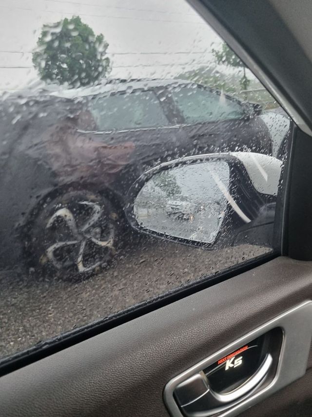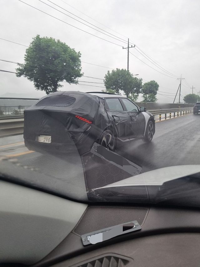 인터넷 자동차 동호회 ‘K5 매니아 클럽’에는 22일 EV6 F/L 스파이샷이 등장했다. 비 오는 날 국내 한 도로에서 임시 번호판을 단 채 주행 중인 EV6 F/L을 옆에서 달리던 차량 내부에서 촬영한 사진이다.