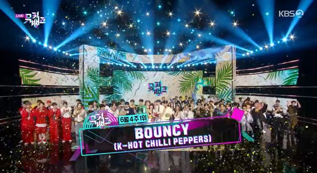 23일 방송된 KBS 2TV '뮤직뱅크'에서는 6월 넷째 주 1위 후보로 스트레이 키즈(Stray Kids)의 '특'과 에이티즈(ATEEZ)의 '바운시(BOUNCY)'가 나란히 오른 가운데 1위 트로피는 에이티즈가 거머쥐게 됐다.