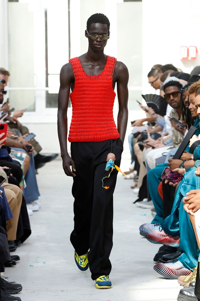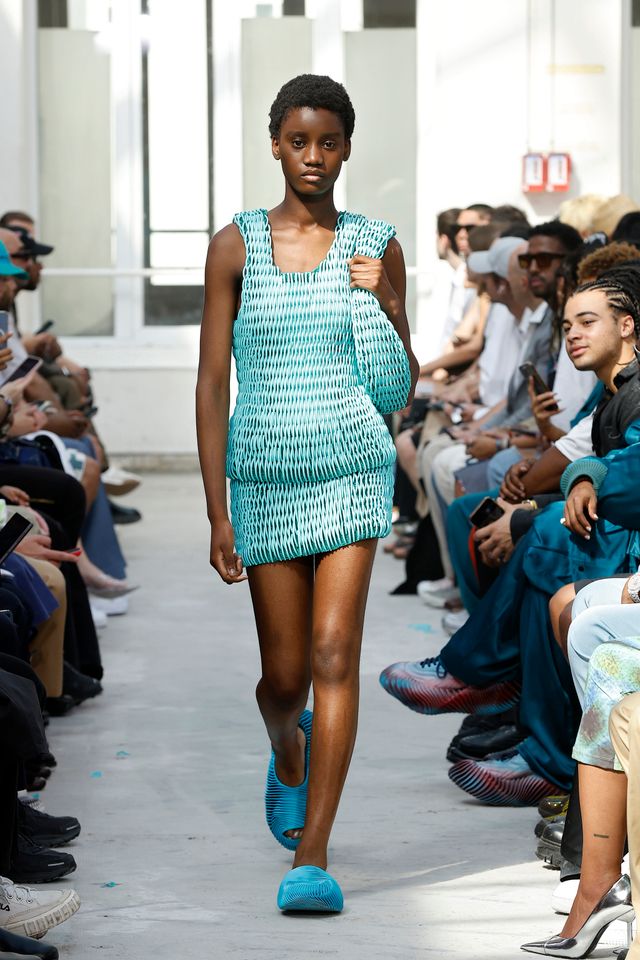 게다가 보터는 매 컬렉션마다 바다와 해양 생물을 향한 끝없는 애정을 담아내고 있는데요. 이번 시즌 역시 구명조끼를 재해석한 베스트, 물방울이 군데군데 튄 듯한 재킷, 비키니 크로셰 톱 등 바다를 모티브로 한 아이템과 블루, 그린, 옐로 같은 얼시한 컬러 팔레트가 줄을 이었습니다. 지난 시즌에 이은 리복과의 협업 스니커와 HP와 손잡고 완성한 3D 프린팅 샌들 또한 눈에 띄었죠.