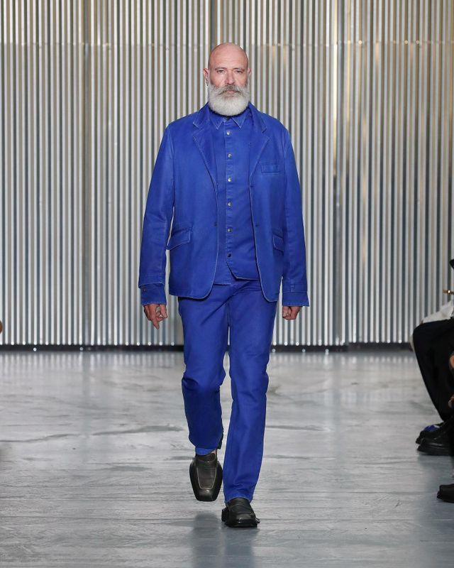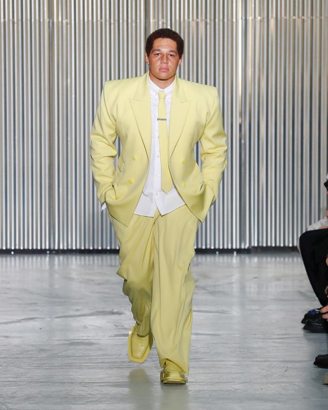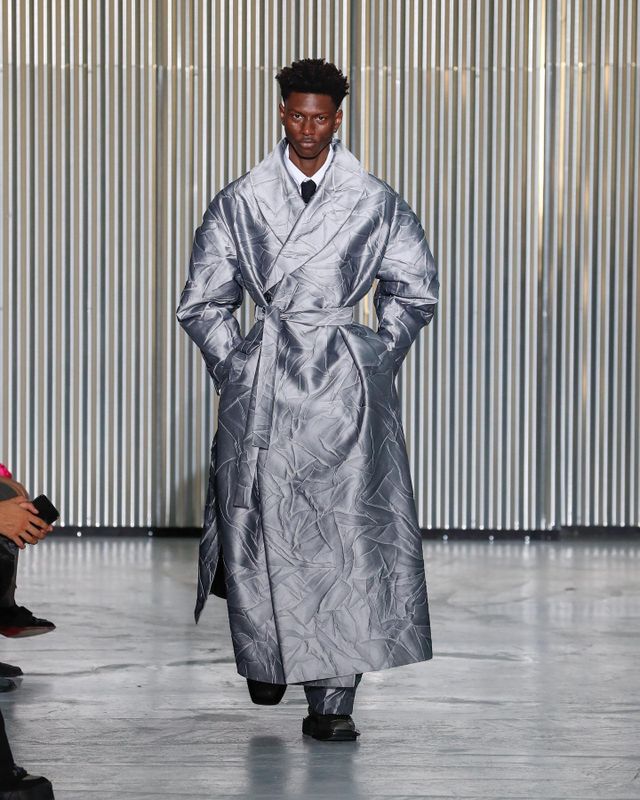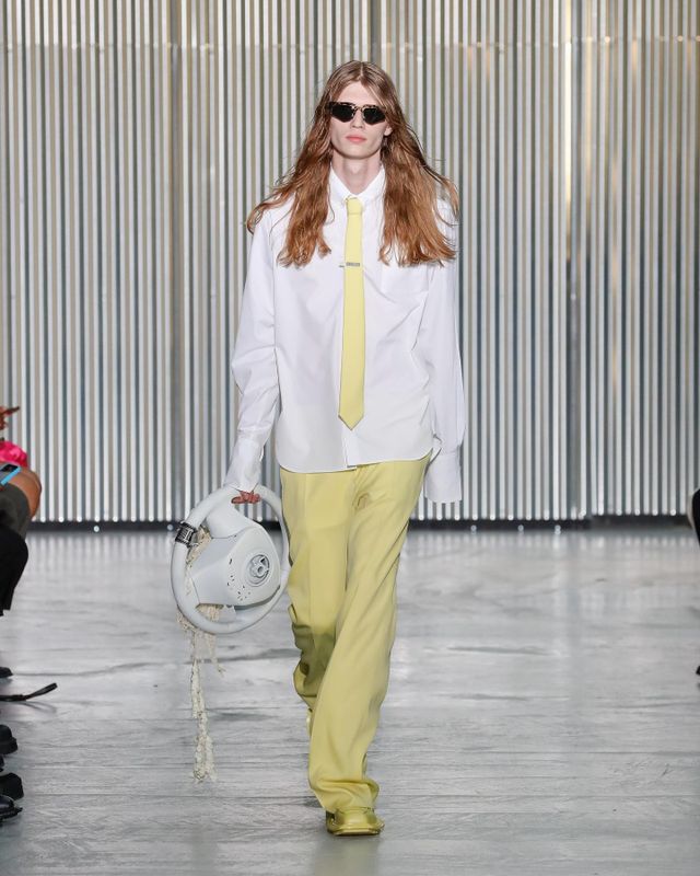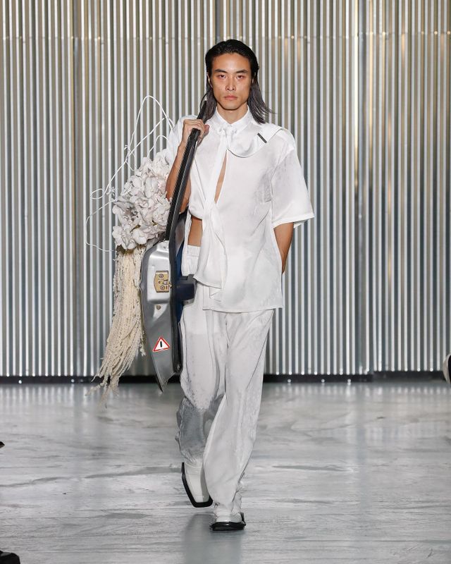 이번 시즌, 크리스토퍼 이셔우드의 소설 〈싱글 맨〉에서 영감을 얻은 루이 가브리엘 누시는 오늘날 남성성이 지니는 의미를 탐구하고자 했습니다. 다양한 연령대와 직업군의 남성을 아우르기 위해 그가 선택한 코드는 바로 자동차였죠. 자동차 도어와 핸들은 가방으로 변신했고, 로고가 새겨진 안전벨트는 과감한 싱글렛의 허리께를 휘감았습니다. 분명 셔츠와 넥타이를 걸친 ‘단정한’ 남성의 모습이지만 심히 과장된 실루엣의 어깨, 관능적인 컷 아웃 디테일은 마치 우리에게 ‘진정한 남성성이란 무엇인가?’라는 질문을 던지는 듯하죠.