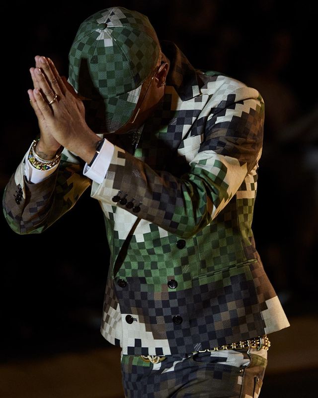 음악, 패션, 예술을 비롯한 다채로운 영역에서 전방위적인 영향력을 행사해 온 아이콘인 만큼, 그만의 시그니처 스타일 또한 어김없이 등장했습니다. 레드 컬러의 PA 스타디움 재킷부터 샤넬 트위드 재킷을 연상케 하는 화이트 크롭 재킷, 커스텀 티파니앤코 다이아몬드 선글라스까지, 그가 사랑한 실루엣이 총출동한 모습이었죠. 게다가 사랑으로 가득한 쇼를 보여주겠다는 그의 포부답게 LV 로고를 활용한 ‘Lovers’ 그래픽과 퍼렐의 오랜 친구인 푸샤티, 제이지의 열띤 공연이 파리의 밤을 아름답게 수놓았습니다.