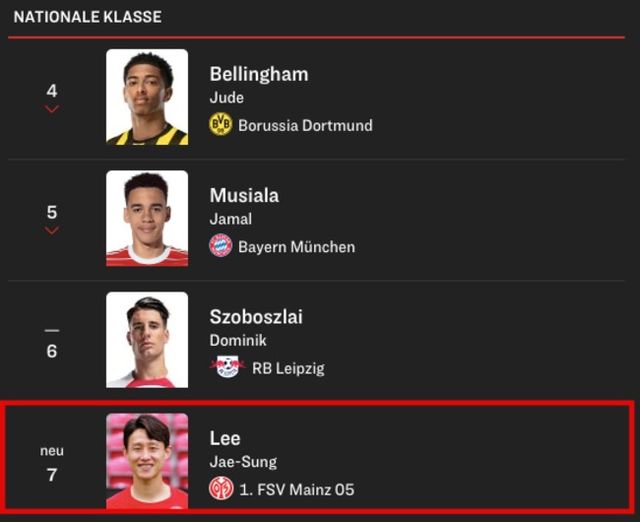 이재성은 7위에 이름을 올렸다. 가장 높은 점수를 받은 선수는 다니 올모(라이프치히)이며, 플로리안 비르츠(레버쿠젠), 율리안 브란트(도르트문트)가 각각 그 뒤를 이엇다. 주드 벨링엄(도르트문트→레알 마드리드)는 4위에 랭크됐다. 또한 바이에른 뮌헨의 분데스리가 우승을 결정지었던 자말 무시알라는 5위에 이름을 올렸다. 6위는 도미니크 소보슬러이(라이프치히)가 선정됐다. 이재성은 7위다.