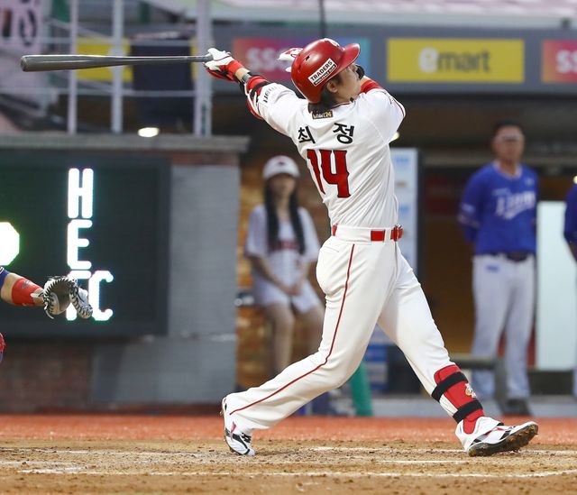 최정은 팀이 5-0으로 앞선 2회말 2사에서 두 번째 타석을 맞이했다. 볼카운트 2-1에서 삼성 선발 백정현의 시속 138km 짜리 직구를 그대로 잡아당겼고, 왼쪽 담장을 넘어가는 솔로 아치를 그렸다.