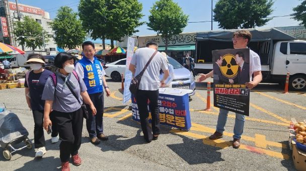 [와이뉴스] 더불어민주당 이용빈 광주광산갑 지역위원장은 23일 송정5일시장에서 ‘후쿠시마 원전 오염수 해양 투기와 수산물 수입 반대 범국민 서명운동’을 진행하면서 현장 민심을 청취했다.