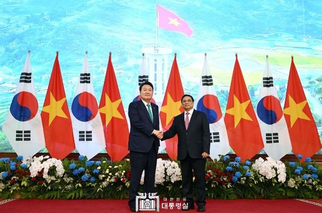 [와이뉴스] 베트남을 국빈 방문 중인 윤석열 대통령은 현지시간 6월 23일 오전 베트남 국가주석과의 정상회담에 이어, 같은 날 오후 베트남 총리실에서'팜 밍 찡(Pham Minh Chinh) 총리와 면담하고 양국 간 경제협력 관계 발전 방안 등에 대해 논의했다.