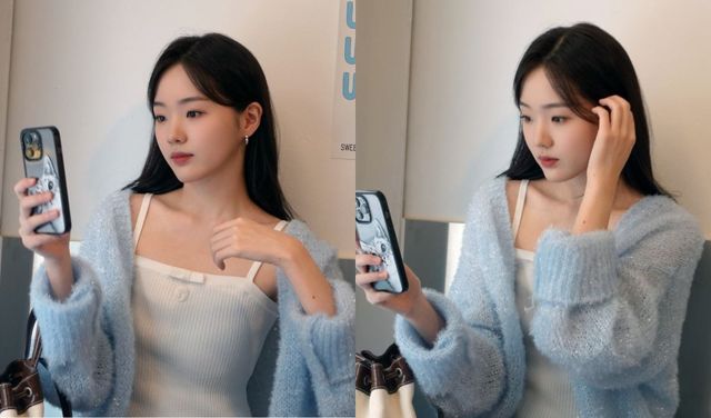 이날 공개된 사진에서 강나언은 긴 생머리에 화이트 톱, 하늘색 가디건을 매치한 스타일링으로 청순가련한 매력을 뽐냈다.