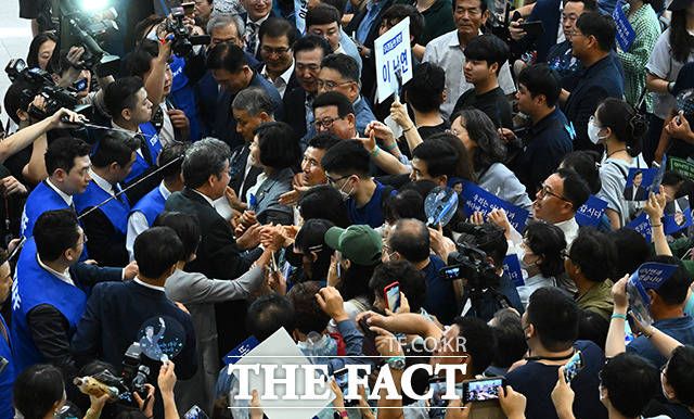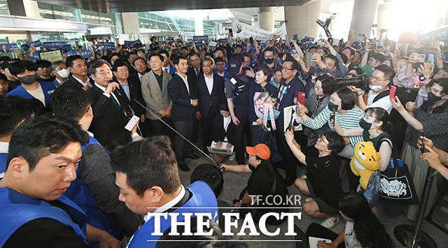 [더팩트ㅣ인천국제공항=박헌우 기자] 이낙연 전 더불어민주당 대표가 24일 오후 1년간의 유학을 마치고 인천국제공항을 통해 귀국하며 지지자들과 인사를 나누고 있다.